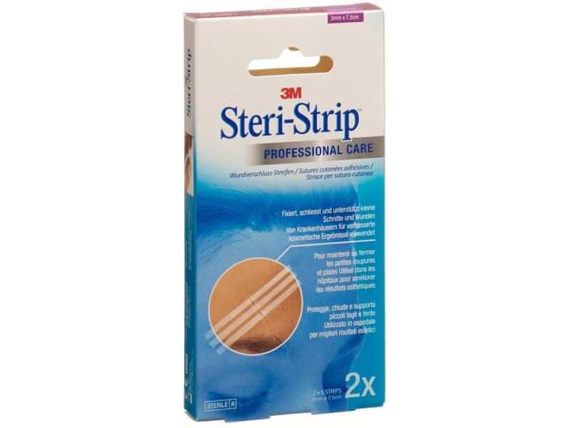 Die weissen 3M Steri-Strip Wundverschluss-Streifen dienen als Alternative zum Nähen von kleinen Wunden und Schnitte. Durch die enthaltenen Rayonfäden entsteht eine hohe Zugfertigkeit und es gibt kein Nachdehnen der Wunde. Dank dem sekretdurchlässigem, atmungsaktivem Material heilt die Wunde schnell und es entsteht eine schöne Narbe.