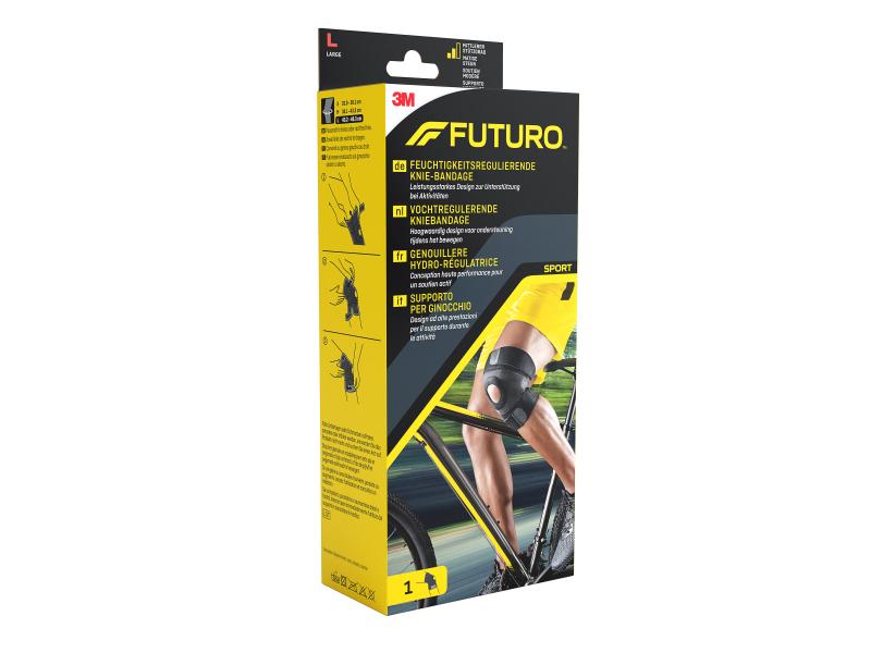 Die Kniebandage unterstützt steife, schwache oder verletzte Knie bei sportlichen Aktivitäten und im Alltag. Die anatomisch geformte Bandage mit zwei Klettverschlüssen sorgt für stabilen Halt die Materialzusammensetzung fördert schmerzlindernde Wärme und Komfort. Dank der Patellaöffnung wird die Kniescheibe ideal unterstützt. Das Material ist zudem atmungsaktiv und geruchsabweisend. Die Grösse L eignet sich für einen Knieumfang von 43.2-48.3 cm. Anwendung: 1. Öffnen Sie alle Verschlüsse und ziehen Sie die Bandage mit dem weiteren Ende voran über den Fuss. Platzieren Sie den Patellaring über der Kniescheibe. 2. Befestigen Sie das obere Band um das obere Ende der Bandage. 3. Befestigen Sie das untere Band um das untere Ende der Bandage. Spannen Sie beide Bänder, bis die Bandage eng, aber bequem anliegt. Material: Polyester|Spandex|Nylon|Neoprenmaterial