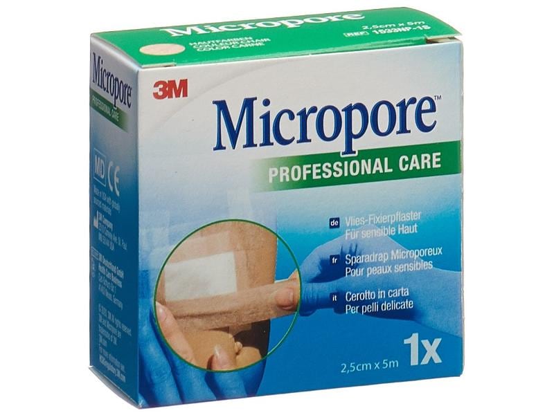 Das Vlies Fixierpflaster von 3M Micropore ist aus weichem Viskosevlies und lässt sich leicht modellieren. Es klebt sanft und kann einfach und ohne Rückstände entfernt werden. Zudem ist das Pflaster besonders hautfreundlich und für empfindliche Haut geeignet. Es ist luft- und wasserdampfdurchlässig.
