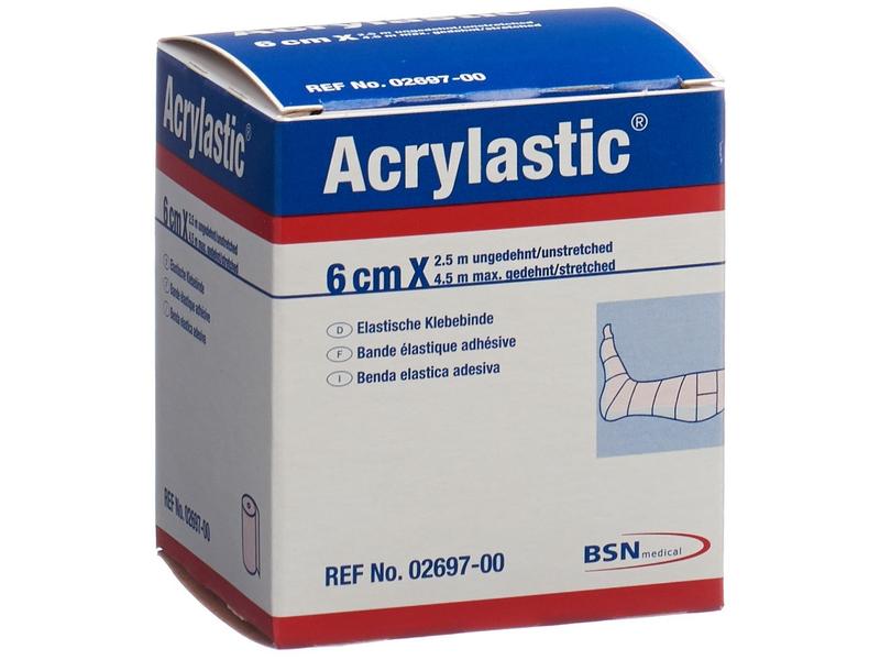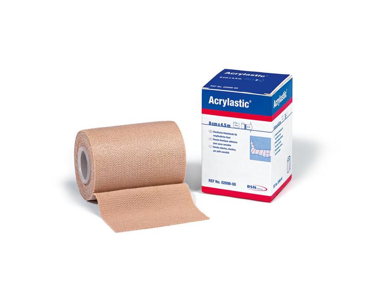 Die hautfreundliche Klebebinde welche röntgenstrahlendurchlässig ist. Die Acrylastic Klebebinde wird oft für Stütz- und Entlastungsverbände und funktionelle Verbände bei Verletzungen an Bändern, Gelenken und Muskeln verwendet. Ohne Latex und somit auch für Allergiker geeignet.