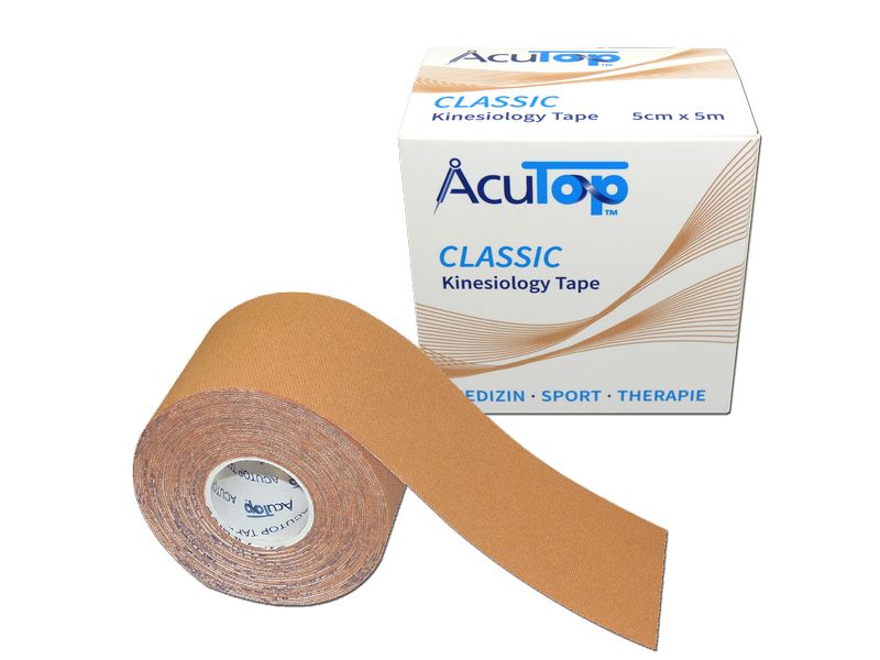 Das Acutop Kinesiology Tape Classic bietet eine effektive Unterstützung für Sportler und Menschen in der Physiotherapie. Mit einem Baumwollträger (93% Baumwolle, 7% Elasthan) und einer wellenförmigen Acrylbeschichtung ist das Tape besonders dehnbar, anpassungsfähig und sorgt für maximale Bewegungsfreiheit. Der speziell aufgebrachte Acrylkleber ermöglicht eine atmungsaktive Anwendung, die die Haut ungehindert atmen lässt. Das Tape ist latexfrei, enthält keine Wirkstoffe und ist sowohl wasserfest als auch atmungsaktiv. Es lässt sich einfach anbringen und auch leicht wieder entfernen. Ideal für den Einsatz im Sport und in der modernen Physiotherapie, bietet es eine ideale Lösung zur Unterstützung von Muskeln und Gelenken. Auch Baden oder Duschen ist mit dem Kinesiology Tape Classic kein Problem.