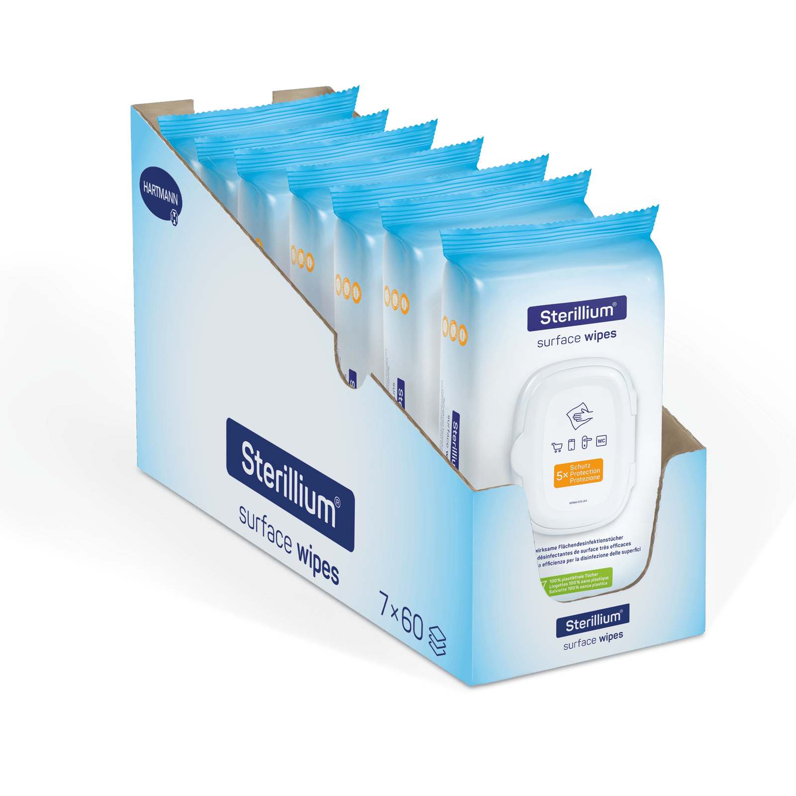 Schnell-Desinfektionstücher für die bequeme Desinfektion alkoholempfindlicher Flächen und Medizinprodukte. Die aus Polyethylenterephthalat (PET) bestehende Fasern der Mikrobac Desinfektionstücher zeigen keine Adsorption und geben die Wirkstoffe des Desinfektionsmittels an die zu desinfizierenden Oberflächen ab. Die mikrobiologische Wirksamkeit der Mikrobac Desinfektionstücher-Lösung wurde nach den Standardmethoden der Deutschen Gesellschaft für Hygiene und Mikrobiologie (DGHM) getestet. AnSchnell-Desinfektionstücher für die bequeme Desinfektion alkoholempfindlicher Flächen und Medizinprodukte. Die aus Polyethylenterephthalat (PET) bestehende Fasern der Mikrobac Desinfektionstücher zeigen keine Adsorption und geben die Wirkstoffe des Desinfektionsmittels an die zu desinfizierenden Oberflächen ab. Die mikrobiologische Wirksamkeit der Mikrobac Desinfektionstücher-Lösung wurde nach den Standardmethoden der Deutschen Gesellschaft für Hygiene und Mikrobiologie (DGHM) getestet. Anwendung: Die Oberflächen mit den Mikrobac Desinfektionstücher sorgfältig abwischen und auf die vollständige Benetzung achten. Nach Ablauf der Einwirkzeit ggf. mit einem Einmaltuch nachwischen. Die Marke Sterillium: Die Desinfektionsmittel der Marke Sterillium gehören zu den Klassikern unter den alkoholischen Hände-Desinfektionsmitteln. Seit über 50 Jahren entwickelt Sterillium Produkte für die Händedesinfektion und überzeugt durch ein verlässliches und breites Wirkspektrum sowie durch hervorragende Hautfreundlichkeit.