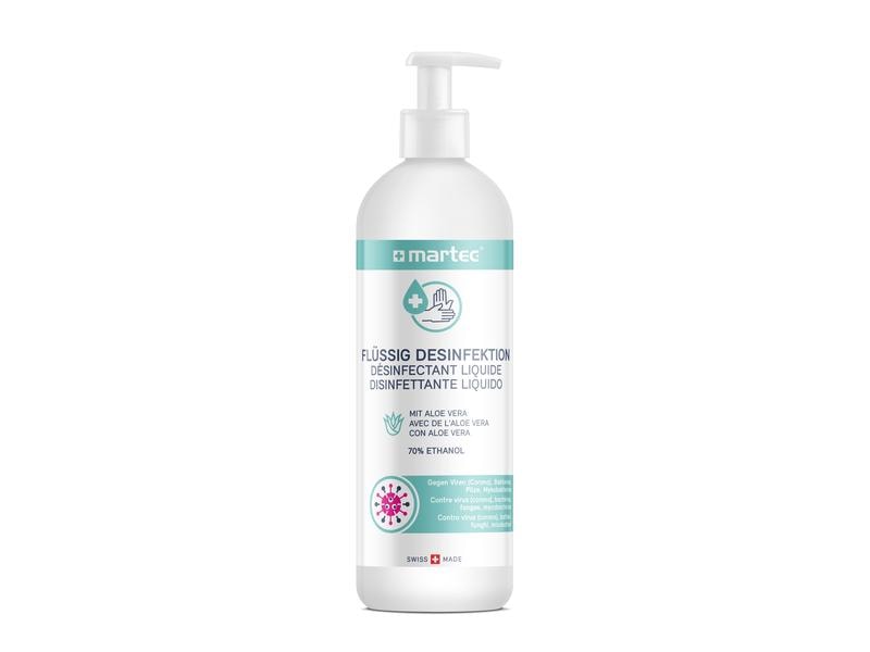 Die Wirkung tritt nach 30 Sekunden ein. Das Desinfektionsmittel wird ausserdem mit Hautpflegekomponenten hergestellt, um die Haut zu schützen.