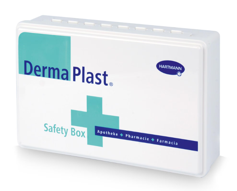 Die DermaPlast Safety Box ist die umfassende Apotheke für die Erste Hilfe in Ihrem Zuhause. In einer praktischen, stossfesten ABS-Kunststoffbox. Den Inhalt des Sets finden Sie in den Spezifikationen. Lieferumfang: 5 x DermaPlast Clean 1 x DermaPlast Pflasteretui 14Stk 2 x Medicomp Kompressen Extra steril 7.5 x 7,5 2 x Peha-Lastotel 6 cmx4m 2 x DermaPlast CoFix 6 cmx2.1m 1 x DermaPlast Sparablanc Transparent 1.25 cmx5m 1 x Omnistrip Wundnahtstreifen 1 x DermaPlast Active SportFix blau 6 cmx4m 1 x Scheren-/Pinzettenetui mit Sicherheitsnadel 2 x Handschuhe Sempercare Nitril Gr. L 1 x Rettungsdecke 1 x Dreiecktuch