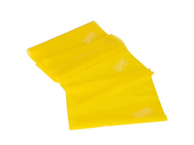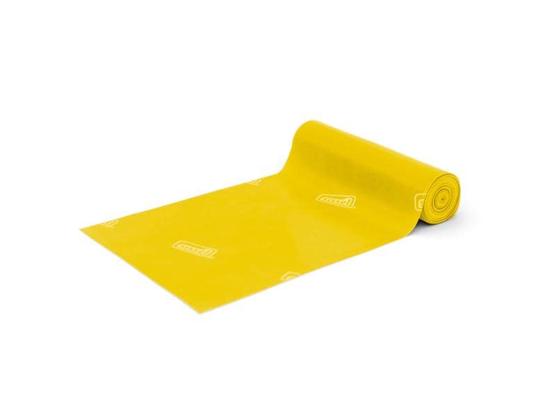 Je nach Farbe ist der Widerstand unterschiedlich stark. Das gelbe Band hat am wenigsten Gegenkraft und wird vor allem bei der Rehabilitation nach Verletzungen und bei Senioren eingesetzt.