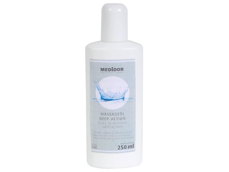 Deep action ist das optimale Massageöl für Massagen bis tief in das Gewebe mit hoher Griffigkeit. Ganz ohne Parfum, Farb- und Konservierungsstoffe ist es für viele Hauttypen, auch empfindliche Haut, geeignet. Vor direktem Sonnenlicht schützen!