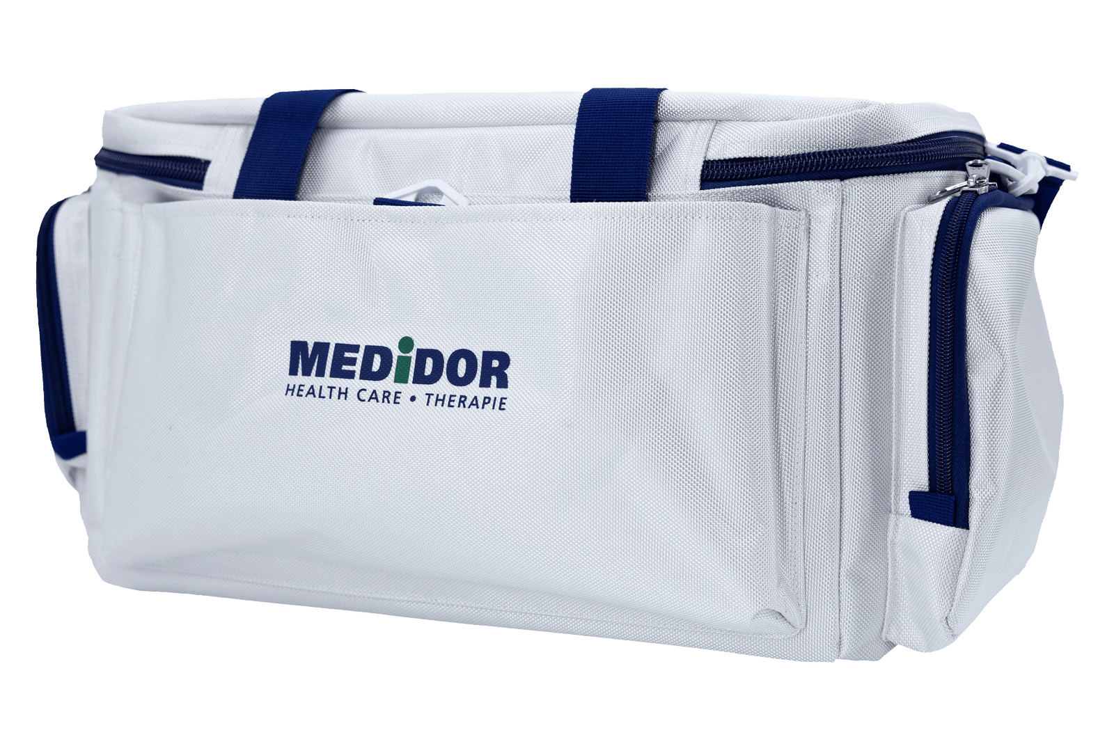Die Medidor Medizinische Sporttasche ist der ideale Begleiter für jeden Betreuer. Sie bietet viel Platz mit ihrem grossen Innenraum. Damit nichts hin und her rutscht, ist die Tasche mit praktischen Kletttrennwänden ausgestattet. In den seitlichen Taschen können kleinere Gegenstände verstaut werden. Die Gurte können der Körpergrösse des Trägers angepasst werden. Die Tasche wird ohne Inhalt geliefert und kann so individuell befüllt werden.
