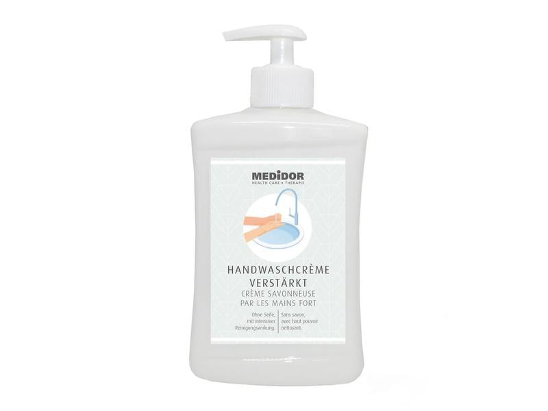 Die Medidor Handwaschcreme verstärkt ist neutral und seifenfrei. Sie eignet sich auch zum Entfernen fettiger Rückstände wie vaselinehaltige Einreibemittel. Sie hat einen leicht zitronigen Duft und schützt die Haut.