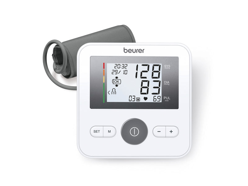 Das Beurer Blutdruck- und Pulsmessgerät BM 27+ bietet eine zuverlässige und komfortable Messung direkt am Oberarm. Mit einem flexiblen Manschettenumfang von 22 bis 42 cm ist es für verschiedene Armgrössen geeignet.