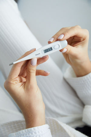 Mit dem Beurer Fieberthermometer FT 09 kann mit der Kontakt-Messtechnik die Temperatur an unterschiedlichen Körperstellen gemessen werden.