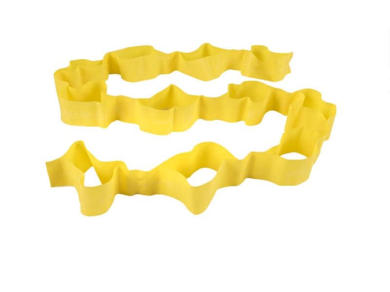 Je nach Farbe ist der Widerstand unterschiedlich stark. Das gelbe Band hat am wenigsten Gegenkraft und wird vor allem bei der Rehabilitation nach Verletzungen und bei Senioren eingesetzt.