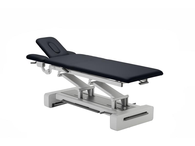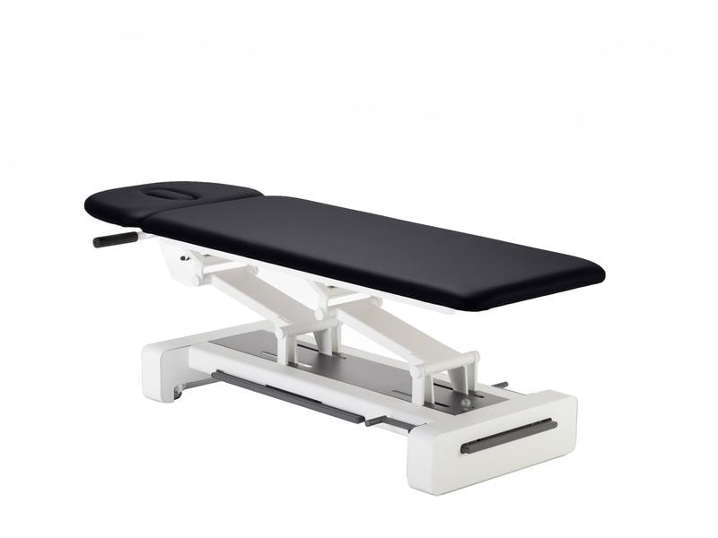 1 Motor für die Höhenverstellung. Hydraulische Liegen werden mittels Fusspedal verstellt.