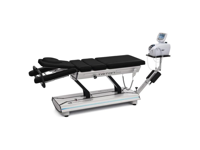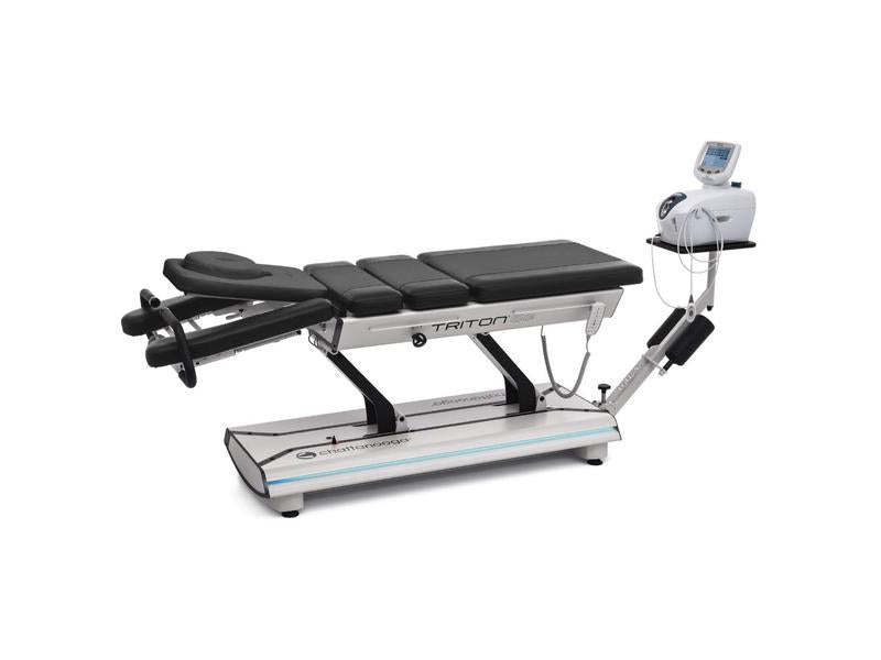 Die manuelle und mechanische Traktion / Dekompression wird bereits seit Jahren erfolgreich in der Behandlung von Wirbelsäulenproblematiken eingesetzt. Mit der neuen, elektrisch einstellbaren Triton 6E Liege der Marke Chattanooga und deren integrierter Wärmefunktion stehen dem Therapeuten nun modernste Technologie und verbesserte Funktionen des Triton Systems für die mechanische Traktion / Dekompression zur Verfügung. Dies dient, im Zusammenspiel mit einer optimalen Lagerung und Positionierung der Patienten, als wesentliche Grundlage für eine erfolgreiche Therapie.
