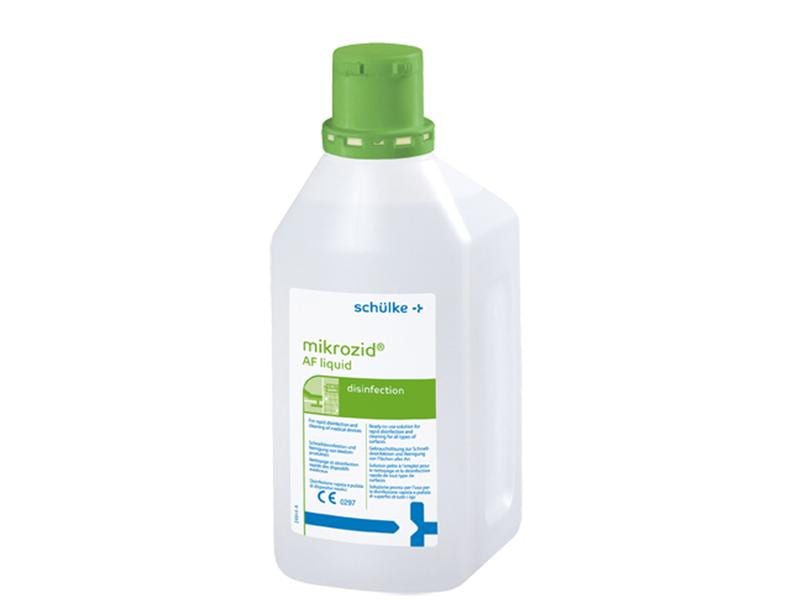 Schülke Mikrozid AF liquid ist bestens zur Desinfektion von Medizinprodukten und Flächen geeignet. Es trocknet schnell nach und ist bereits gebrauchsfertig gemischt abgefüllt.