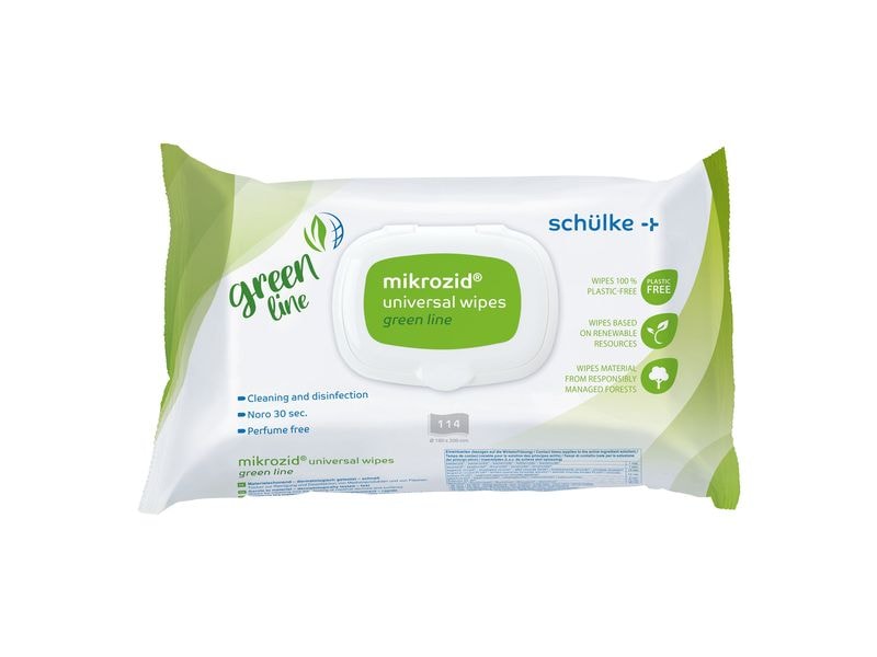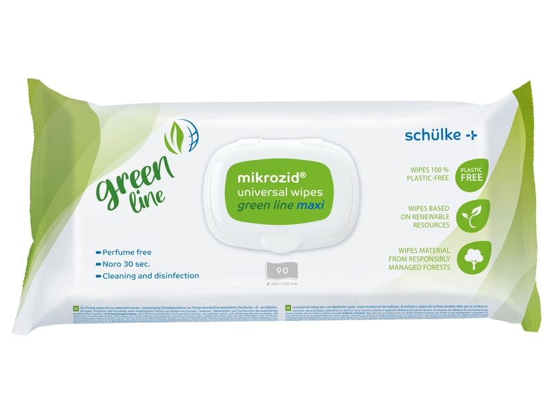 Die schülke Mikrozid Universal Wipes Green Line bieten eine zuverlässige und schnelle Lösung zur Desinfektion von nicht invasiven Medizinprodukten und Flächen. Mit ihrer gering alkoholischen Formel zeichnen sich die Tücher durch eine sekundenschnelle Wirkung aus, die eine effektive Hygiene in kürzester Zeit garantiert. Besonders hervorzuheben ist, dass die Tücher zu 100 % plastikfrei sind und vielfach nachhaltig sowie klimaneutral produziert werden. Die hohe Materialverträglichkeit sorgt zudem dafür, dass auch empfindliche Oberflächen sicher behandelt werden können. Dermatologisch getestet, bieten die Mikrozid Universal Wipes Green Line auch bei häufiger Anwendung höchsten Schutz und Pflege. Anwendungsgebiet: Das Produkt ist geeignet zur Desinfektion von Medizinprodukten und anderen Flächen. Unsere vielseitig einsetzbare Schnelldesinfektion eignet sich auch zur Desinfektion von empfindlichen Kommunikationsgeräten. Smartphones und Tablets gehören zu den häufigen Handkontaktflächen. Mit mikrozid® universal green line können diese sicher aufbereitet werden, ohne dabei den Materialien zu schaden.