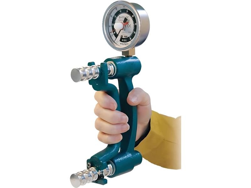 The grip strength is measured by the hydraulic hand force gauge, the pressure strength with the mechanical pressure gauge. The scope of delivery can be found in the specifications.