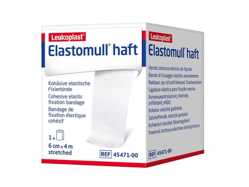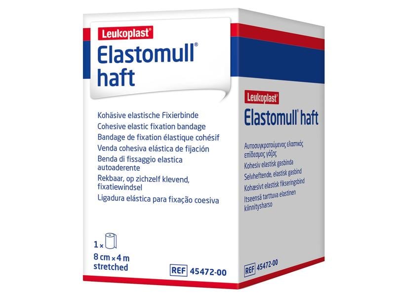 Conventional fixation bandages easily "slip" at joints or when fixing cast splints. Not so with Elastomull adhesive. The elastic cohesive bandage is coated with a latex-free synthetic polymer. As a result, the individual wrapping layers adhere particularly securely to each other. This results in an excellent, crease-free fit with fast and material-saving application. Thanks to the special weaving technique and the highly elastic, crimped polyamide threads, Elastomull haft has excellent elasticity, which is retained even when worn for long periods.
