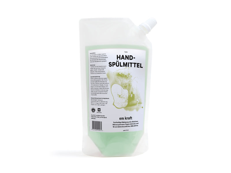 Cleaning of glasses and dishes. Naturally removes grease and dirt with highly effective microorganisms. Also suitable for hand washing.