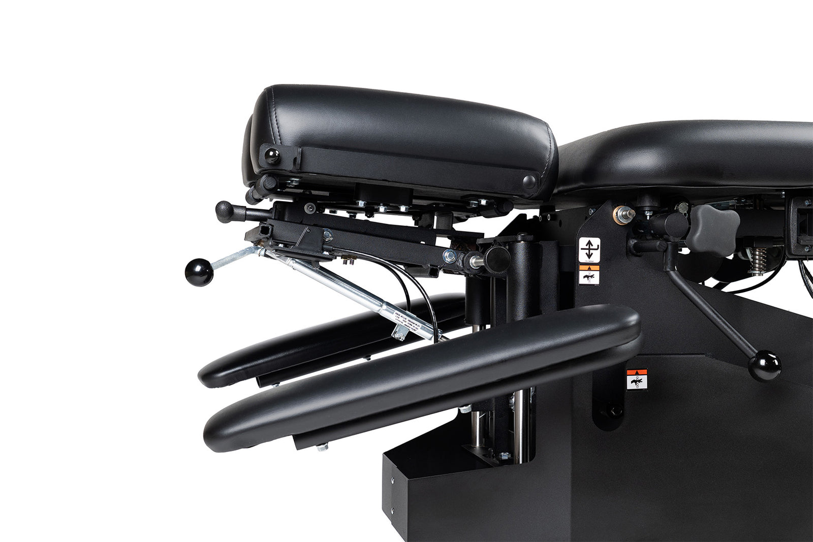 With the Ergostyle HYLO table, the chiropractor can now perform almost any treatment technique comfortably and efficiently. The advantages of the multifunctional head sections and various other functions, such as the breakaway chest segment and drops, ensure that even complex adjustments can be carried out easily.