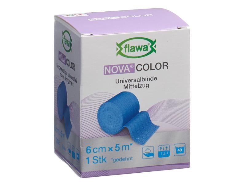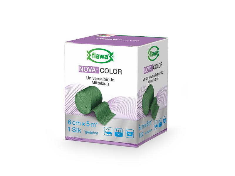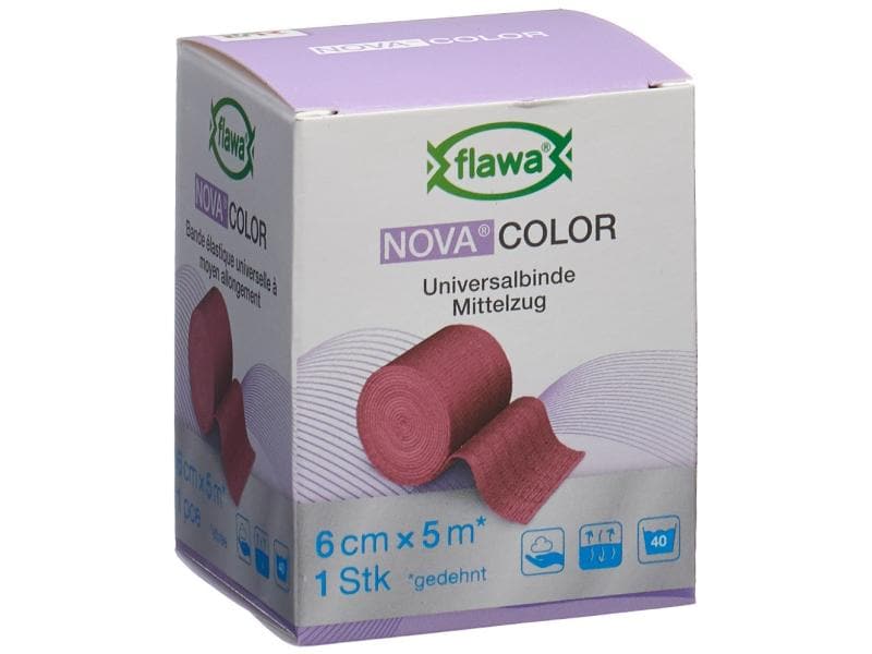 The permanently elastic Nova Color universal bandage from FLAWA with firm selvedges has a high cotton content, is permeable to air and, with a longitudinal stretch of approx. 115%, is ideal for fixation, support and light compression. Nova Color can also be used to secure splints professionally. The material offers a non-slip, fine and soft surface and can be applied without creasing. The bandage is air-permeable and free of natural rubber latex for ensure high compatibility.