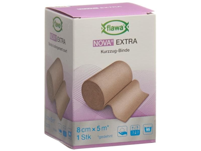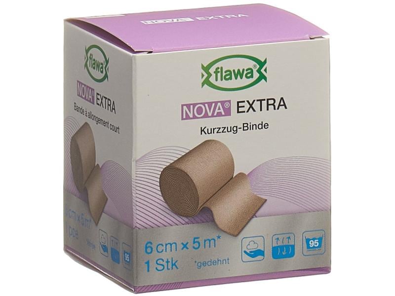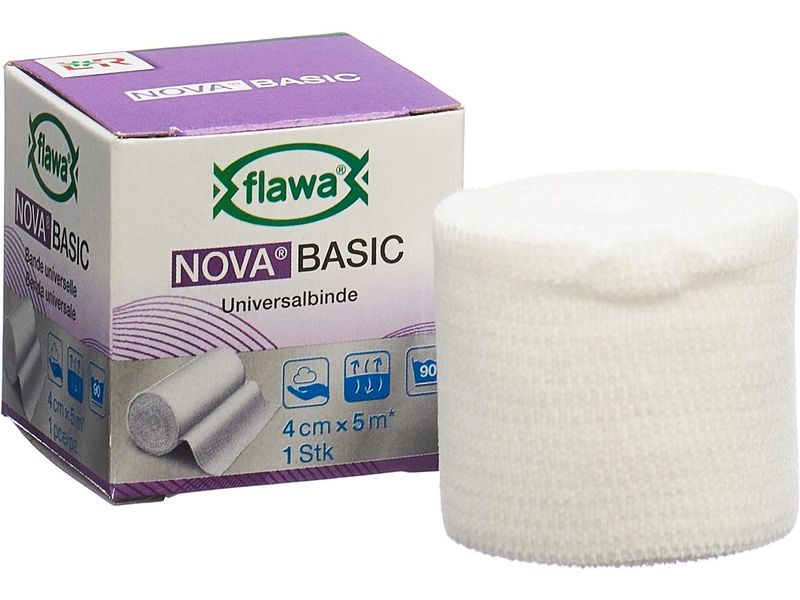 The NOVA Basic elastic bandage from FLAWA is approx. 90% longitudinally elastic and is made of 100% cotton. NOVA Basic can also be used to treat tendinitis, to support, relieve and immobilize body parts or to secure bandages. The non-slip fabric structure ensures that the individual layers adhere well to each other during application and provide a non-slip hold. NOVA Basic is air-permeable, kind to the skin, low-germ and washable up to five times at 95 °C.