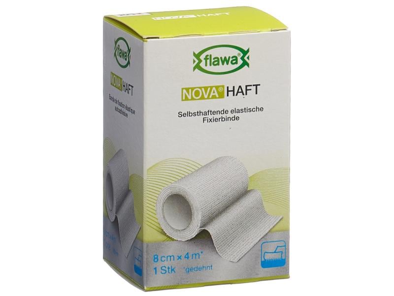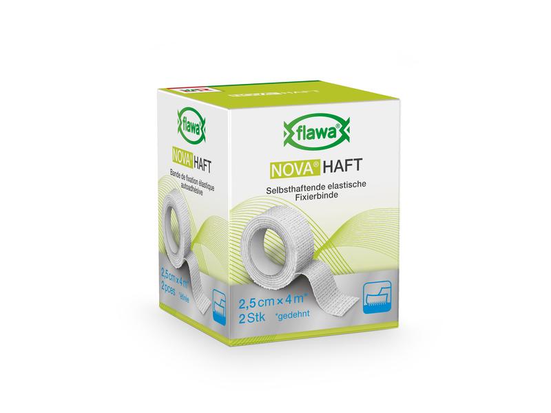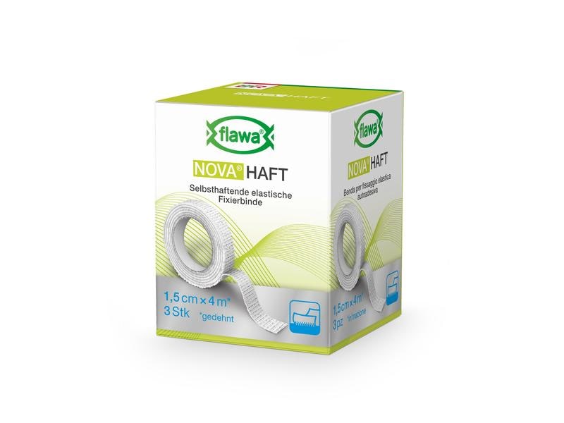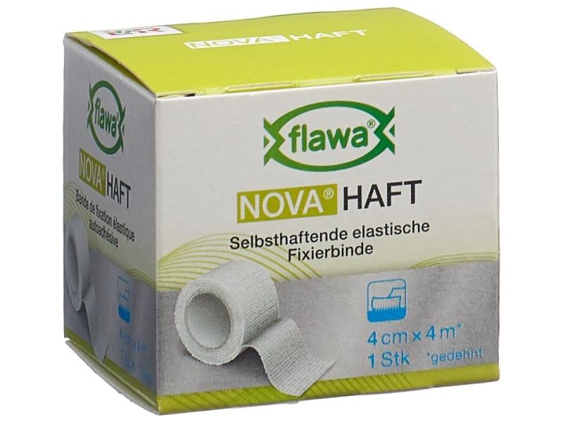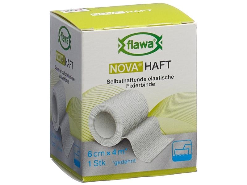 With the self-adhesive, elastic gauze bandage NOVA Haft from FLAWA, you can apply non-slip fixation bandages with a permanent fit. It is suitable for all types of bandage fixation and for securing padding material or cannulas. It can also be used to stabilize muscles, tendons, ligaments and joints with a slight immobilizing effect. The bandage ensures a reliable hold even on conical parts of the body and joints. When applied, the individual layers adhere well to each other, but do not stick to the skin, hair or clothing. The natural rubber latex-free material is skin-friendly and permeable to air. Application: Only use the bandage on intact skin. Suitable for single use. Properties: - non-slip - self-adhesive, without sticking to skin, hair or clothing - skin-friendly - permeable to air - natural rubber latex-free - shelf life 3 years