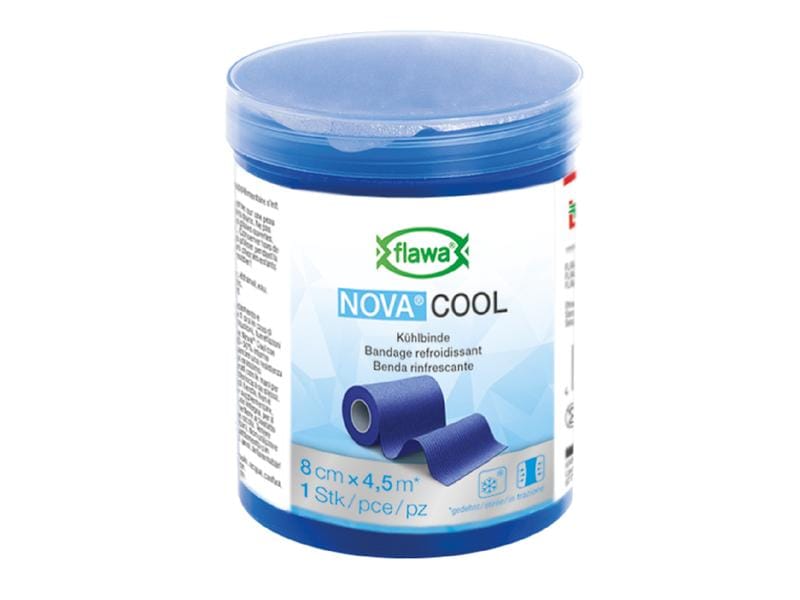 Immediate cooling is important for strains, sprains, bruises, swelling and contusions. for first aid, NOVA COOL from FLAWA combines three functions in one product: the cooling bandage compresses and - supported by camphor, menthol and essential oils - provides a cooling effect for at least one hour. The bandage is suitable for use on uninjured skin and has been dermatologically tested. Thanks to the self-adhesive material, you do not need any further help for fix it in place - even when wet, the fabric adheres reliably to itself. Two to three layers with a slight stretch are sufficient. The bandage is durable for up to 3 years and the length is sufficient for 2-4 applications. Application: for the initial treatment of strains, sprains, bruises and contusions in adults and children over 3 years of age. Do not use during pregnancy or while breastfeeding. Only use on uninjured skin. for single use.