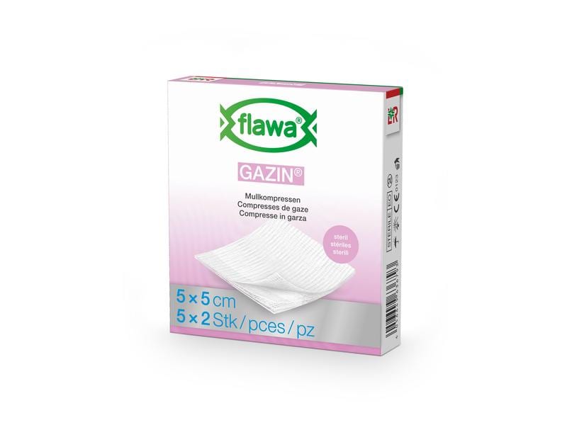 The sterile folding compresses from FLAWA are made of 100% cotton. Thanks to their good absorbency, they can be used reliably to clean wounds, cover wounds or absorb body fluids. As a high-quality medical product, FLAWA's folded compresses meet the requirements of DIN EN 14079, which means that the internal cut edges prevent any threads from getting into the wound. Each packaging unit contains 5 packs of 2 sterile folded compresses. Properties: - made of gauze in accordance with DIN EN 14079 - good absorbency - 100% cotton - sterile packaging - 17-thread, 8-ply Application: - for cleansing wounds - for covering wounds - for absorbing body fluids
