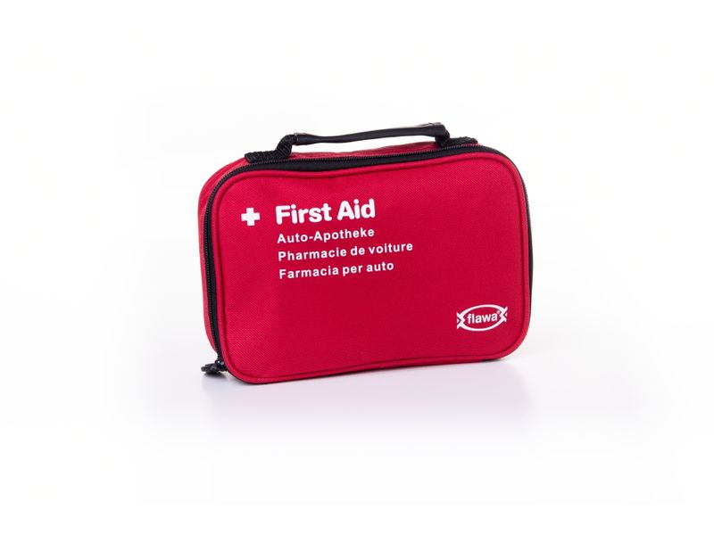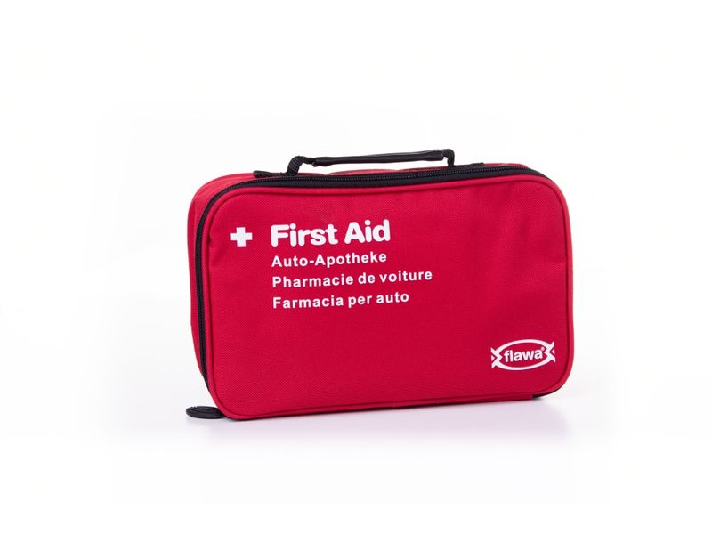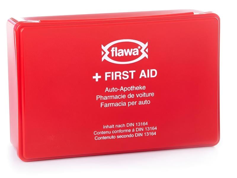 The DermaPlast car first-aid kit contains products for injuries while traveling in a plastic case made of impact-resistant and heat- and cold-resistant material. In many European countries it is compulsory to carry a complete and valid first-aid kit. With the Flawa first-aid kit, you are therefore on the safe side in countries where it is compulsory to carry one. The exact contents of the set can be found in the specifications. Countries with mandatory carry-on: Belarus, Bulgaria, Germany, Estonia, European Turkey, France, Greece, Croatia, Latvia, Lithuania, Moldova, Austria, Poland, Portugal, Slovakia, Spain, Czech Republic, Ukraine, Hungary Scope of delivery: 1 adhesive plaster, DIN 13019-A, 5 m x 2.5 cm 14 plaster set: 4 quick wound dressings 10 x 6 cm according to DIN 13 019 2 finger bandages-EL 12 x 2 cm 2 fingertip bandages 2 plaster strips-WS 19 x 72 mm 4 plaster strips-WS 25 x 72 mm 1 dressing pack DIN 13151-K 2 dressing packs DIN 13151-M 1 dressing pack DIN 13151-G 1 dressing cloth DIN 13152-A, 60 x 80 cm 1 dressing cloth DIN 13125-BR, 40 x 60 cm 2 Fixation bandages, DIN 61634-FB-6 6 cm x 4m 3 fixation bandages, DIN 61634-FB-8 8 cm x 4m 1 rescue blanket 210×160 cm 6 wound compresses 10 x 10 cm 2 triangular towels, DIN 13 168-D 1 pair of scissors DIN 58279-A 145 4 pairs of disposable vinyl gloves DIN EN 455 2 wet wipes for skin cleansing 2 face masks 2 wet wipes for cleaning 1 first aid guide 1 inventory list