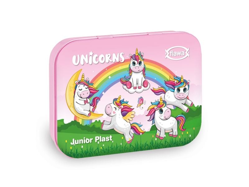When little adventurers playfully explore the world and actively romp around on sports fields and playgrounds, the odd scratch is bound to happen. The quickest way to dry those big crocodile tears is with a loving hug and JUNIOR PLAST. The hypoallergenic children's plasters in a practical tin box quickly distract from the pain with their uplifting motifs and reliably protect superficial wounds. The set contains 20 plasters, so you have a long-lasting first-aid kit at home or on the go.