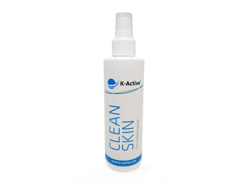 The K-Active CleanSkin Pre-Taping Spray is an efficient and easy-to-use cleaning agent. By gently cleansing the skin of impurities or cream residue after a massage, it is ideal for use before kinesiology taping and can therefore increase the adhesive effect and duration of the tape. Anyone who is out and about doing sport and therefore does not always have soap and water to hand will benefit from the quick and effective application of the spray. By using the spray, it can optimize the adhesion of K-Active tapes, e.g. on areas of the body that perspire heavily or during sweaty sports. Ideal for applications where the adhesive faces particular challenges.