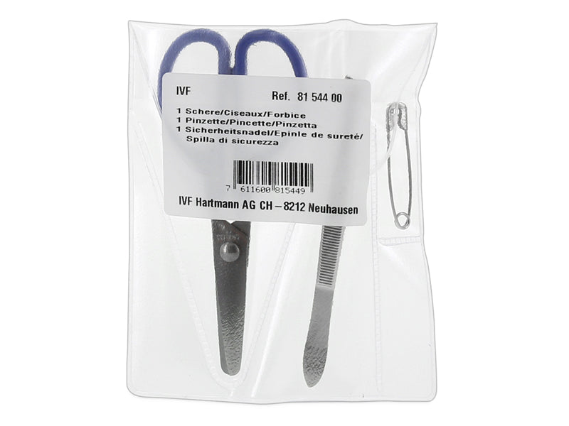 Practical and compact - the IVF set with scissors, tweezers and safety pins is the ideal companion for on the go. Whether traveling, hiking or in everyday life - this set is ideal for quick wound care and minor first aid measures. Thanks to its handy Size , it fits in any pocket and is ready to hand when you need it.