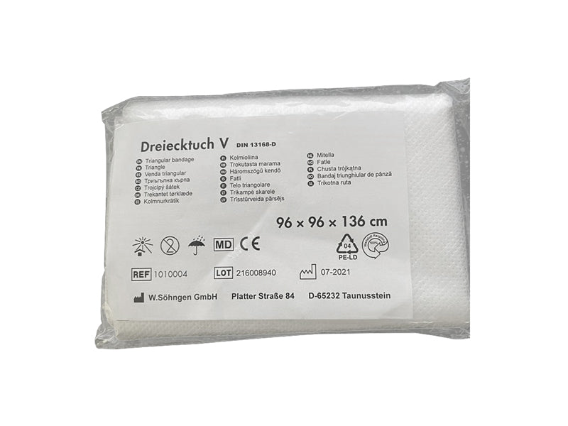 The 100% viscose triangular sling is a versatile first aid aid for - ideal for securing fractures or as an arm sling. With its generous dimensions of 96 × 96 × 136cm , it can be used flexibly to react quickly and reliably in emergencies. Whether in the medicine cabinet, in the car or in the first aid kit.
