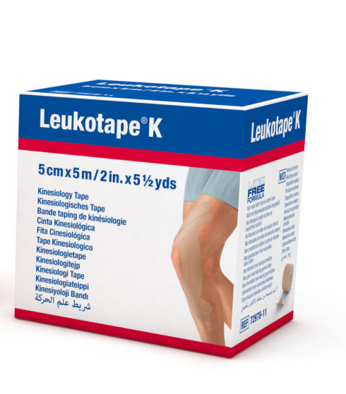 Leukotape K is a kinesiology tape bandage from the Leukotape brand. It is ideal for stabilizing and supporting joints during sporting activities. The elastic material adapts well to the body and at the same time offers good freedom of movement. The adhesive surface has sinusoidal cut-outs to allow air circulation. Ideal for athletes and people who need extra stability in everyday life Material: Consists of 97% cotton, 3% Lycra and acrylic adhesive
