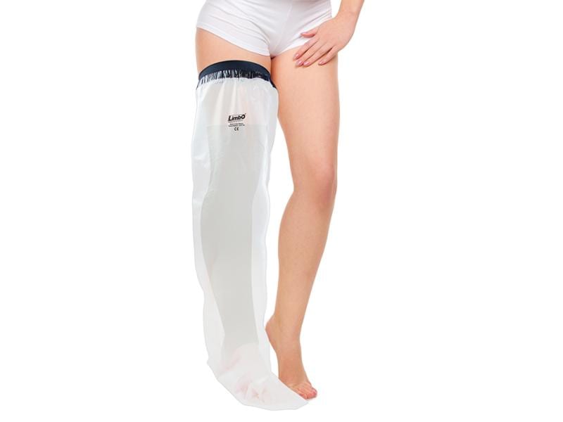 Limbo is an aid for bathing and showering for people with plaster casts and wound dressings as well as for people with sensitive skin or circulatory disorders, during PICC catheter therapy or after dermatological and radiological treatments. Limbo is suitable for daily hygiene at home or on the go (shower or bath) as well as for leisure and vacation activities (outdoor pool). Limbo's waterproof bathing covers can be immersed in water, are reusable and comfortable to wear. All seams are tightly welded and free of solvents or adhesives. The black closure is made of latex-free neoprene and seals without pressure points. The transparent swim cover is made of three-layer PVC and nylon, is latex-free and flame-retardant. The inside is non-slip.