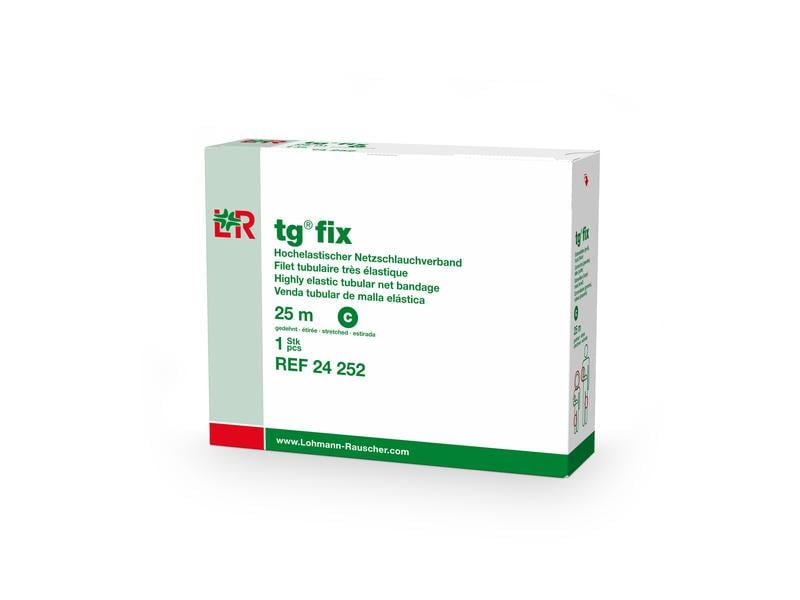 The Tg-fix mesh bandage is suitable for securing wound or ointment dressings, applying occlusion foils and securing splint dressings.