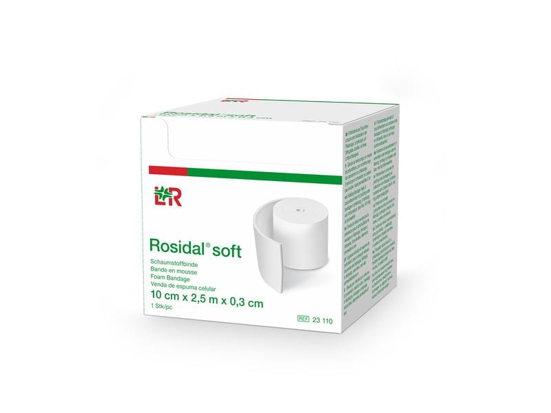 Lymphological and phlebological compression bandages require appropriate padding. The Rosidal soft foam bandage is ideal for this. The compression pressure of the Rosidal K short-stretch bandage is distributed evenly over the extremity and compression therapy is secured by avoiding constrictions. As the open pores of the soft foam bandage interlock, the bandage is prevented from slipping.
