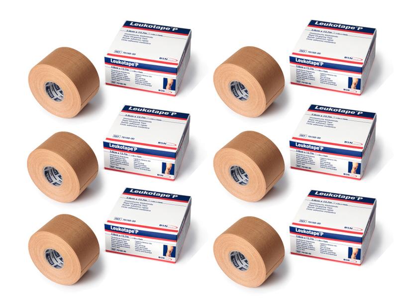 Leukotape P is a porous adhesive tape that can be cut by hand. It is not elastic, but is waterproof and has a very high tensile strength.