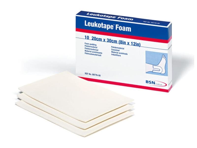 Leukotape Foam is a laminated foam for pressure protection or local pressure increase. Can be cut to size by hand. Used for padding in support and relief bandages. It is flexible and can be applied to highly contoured areas of the body.