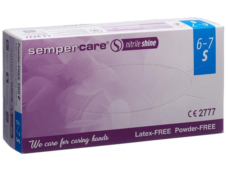 Non-sterile, powder-free examination glove made of nitrile butadiene rubber. The disposable gloves can be worn on both sides, with rolled edge. Ideally suited for type I allergy sufferers as they are free from latex proteins. Good chemical resistance. Tested for food suitability. Smooth surface with textured fingertips for a secure grip.