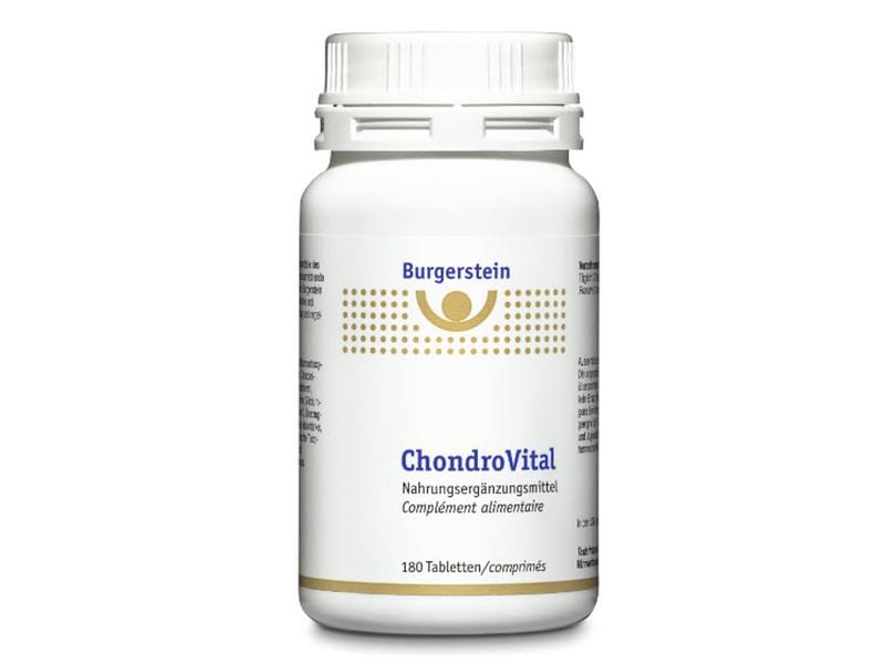 Burgerstein ChondroVital contains glucosamine in the form of glucosamine sulphate and chondroitin, supplemented with vitamins and trace elements. Glucosamine and chondroitin are natural components of connective tissue, ligaments and joint cartilage. Vitamin C contributes to collagen formation for normal bone and cartilage function. Vitamins D and K support the maintenance of normal bones. Vitamin E, zinc, manganese, copper and selenium help to protect cells from oxidative stress.