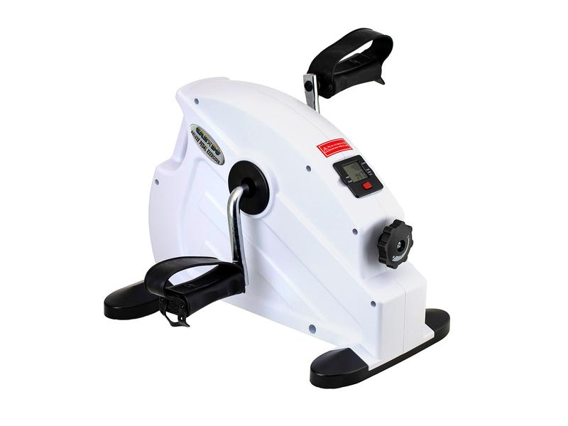 The Pedal Exerciser is chrome-plated with retractable feet. The resistance can be infinitely adjusted and the pedals are non-slip and equipped with a foot strap.