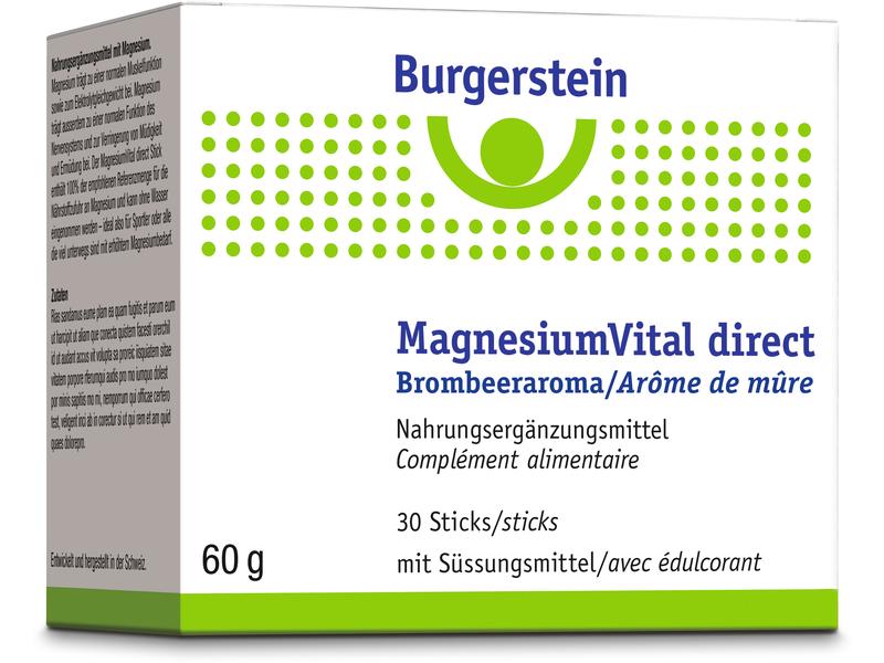 Magnesium: Contributes to normal muscle function and electrolyte balance. . Magnesium also contributes to the normal function of the nervous system and to the reduction of tiredness and fatigue. Directions for use: Put 1 stick content per day - without water - directly into the mouth and swallow. The Burgerstein brand: Burgerstein was founded in 1972 by Dr. Lothar Burgerstein. Since its foundation, the range of micronutrients has grown over the years to more than 80 products. The products are used both preventively and therapeutically. The products are very popular with customers. They have honored Burgerstein several times with the "Most Trusted Brand" award. In addition, the company not only invests in the pharmaceutical development of innovative products, but is also aware of its social obligations. For example, on the occasion of its 40th anniversary, the company donated CHF 40,000 for people in need in Switzerland.
