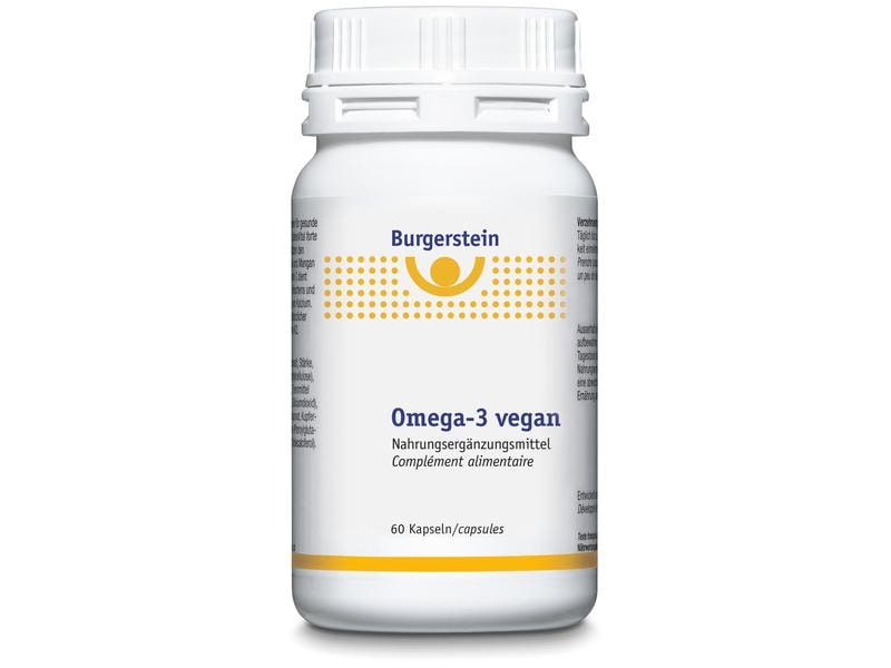 Burgerstein Omega-3 vegan contains omega-3 fatty acids DHA and EPA from algae that are cultivated in an environmentally friendly way. EPA and DHA contribute to normal heart function (effect of 250 mg EPA and DHA combined per day). An adequate supply of omega-3 DHA also contributes to the maintenance of normal brain function and vision in adults (effect at 250 mg DHA per day). The capsules are well tolerated and also suitable for pregnant and breastfeeding women. The intake of omega-3 DHA by the mother contributes to the normal development of the eyes and brain in the fetus and in breastfed infants.