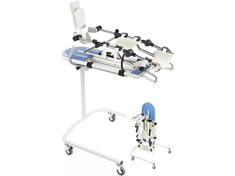 Therapeutic movement trainers are designed for use at home as well as for training in surgeries and institutions. The benefits lie in alleviating the consequences of lack of exercise (e.g. circulatory disorders, joint stiffness, muscle loss, etc.), maintaining or improving walking ability, loosening muscles and also reducing spasms, discovering and promoting residual muscle strength and strengthening the psyche and well-being.