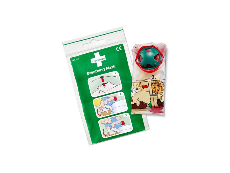A respiratory mask consists of a non-return valve (green upper part, red lower part and a membrane) and a plastic film with printed instructions for use in the form of pictures. The respiratory mask is packed in a plastic pressure seal bag. 2. intended use The device is used as an aid for mouth-to-mouth resuscitation of injured persons. The device also serves as a barrier and to reduce contact between the rescuer and the injured person's blood, secretions, vomit and other body fluids. The mask enables effective ventilation and protects both the rescuer and the patient from infection. It is easy to use and can be life-saving in emergencies. Ideal for use at home, in the car or at work.
