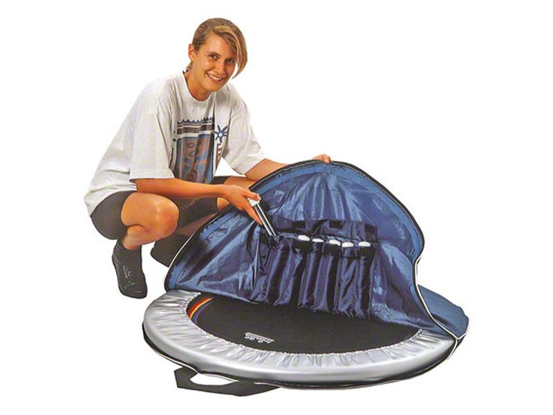 The trampoline is suitable for everyone, especially beginners. The height-adjustable support bar gives you more stability during training, while eight feet for a secure footing. The support bar and feet can be removed in a few simple steps so that the trampoline can be stowed away to save space. The numbered points on the jumping mat help you to train your coordination and achieve a more targeted movement sequence.