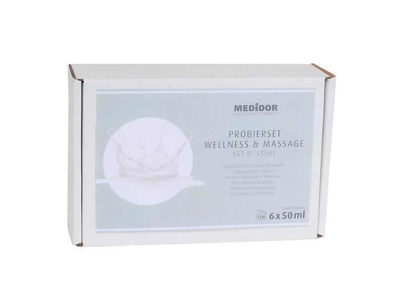 The Medidor tasting set with 6 x 50 ml massage lotion has something for every taste. It is also suitable as a gift.