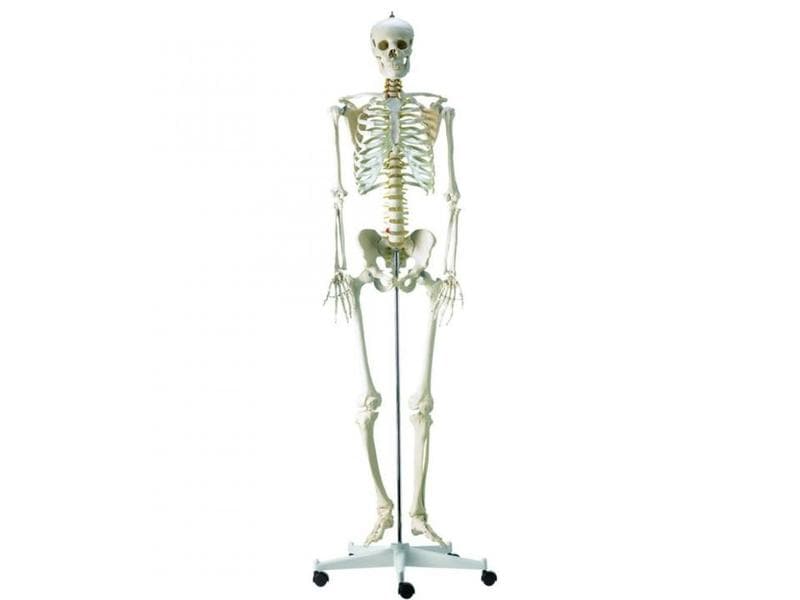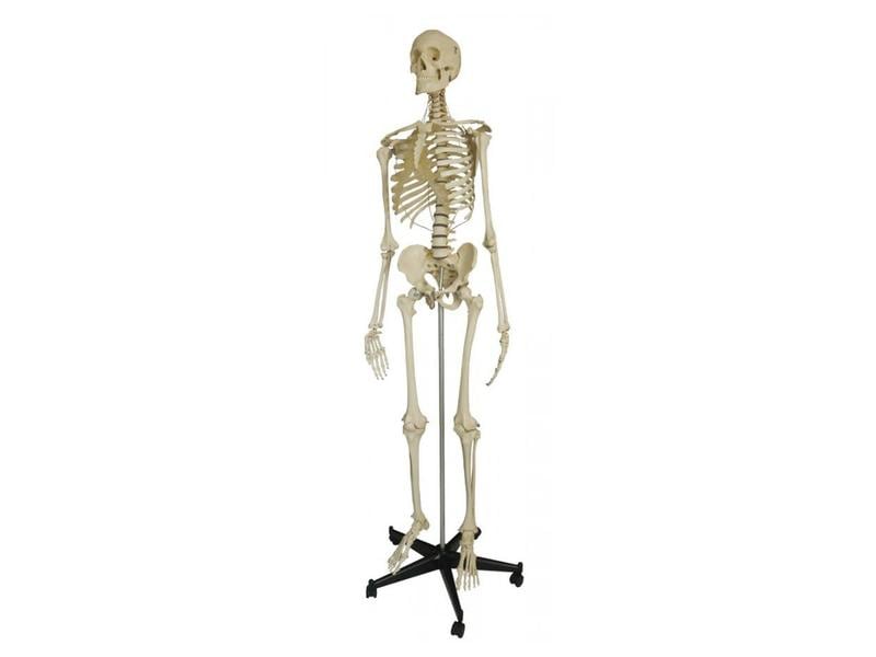 The Rüdiger skeletons achieve the highest level of detail through elaborate manufacturing. Exact replica of a perfect real skeleton with ideal bone structures. Made from particularly strong special anatomical plastic, which has similar properties to natural bone material (weight, strength, etc.).