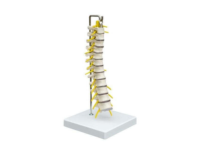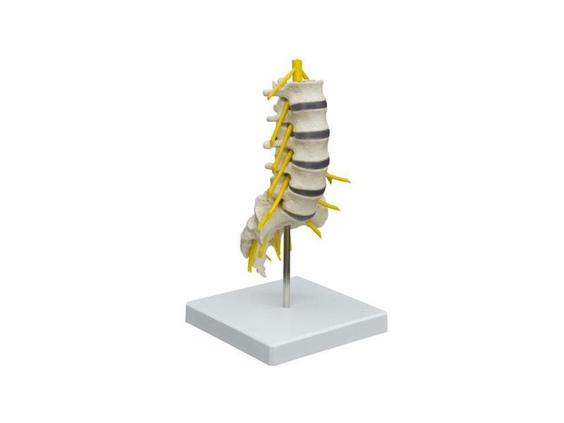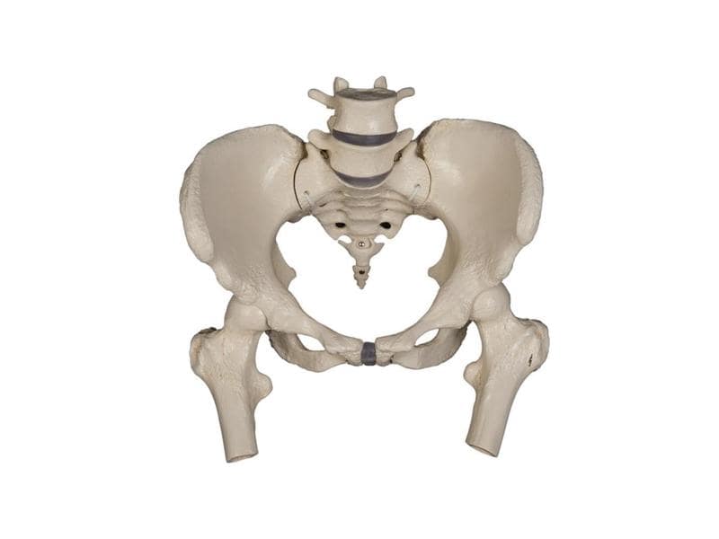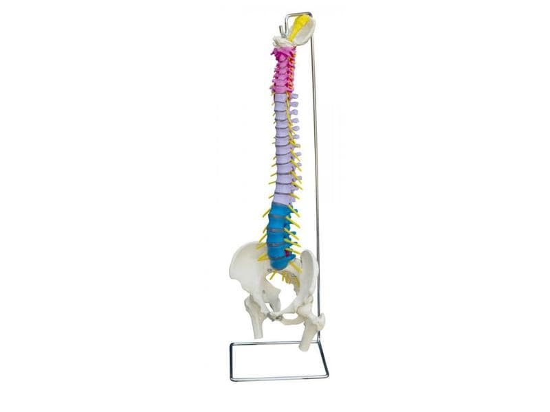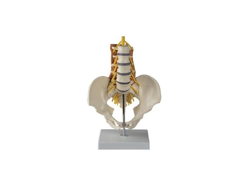 Excellent for orthopaedic and chiropractic demonstrations. With flexible spine, arteries, spinal cord nerve cords and herniated disc (hernia). Flexibility enables natural movements and curves of the upper body to be demonstrated. The sacrum is cut open at the back and fitted with a removable bone flap so that the course of the nerve endings in the sacrum can be clearly seen as they enter the pelvic area.